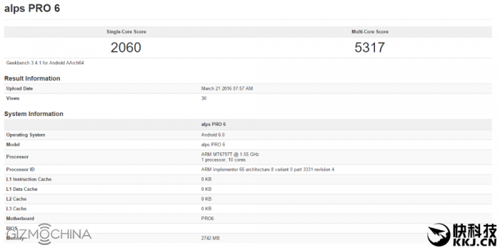 Как следует из информации Geekbench, в Meizu тестируют флагман Pro 6, как минимум, в одной модификации: Helio X25 (МТ6797Т), 3 Гб оперативной памяти и под управлением Android 6.0. Отметим лишь то, что характеристики гаджета могут оказаться далеко не финальными, ведь по слухам должна выйти версия аппарата с 6 Гб ОЗУ. Вполне вероятно, что тест прошла «младшая» модификация Pro 6. По итогам прогонки в бенчмарке-тесте, смартфон продемонстрировал достойный результат: 2060 баллов в одноядерном тесте и 5317 в многоядерном. По производительности чип превзошел результаты Kirin 950 в одноядерном тесте и Snapdragon 820 в многоядерном, но уступает Exynos 8890, набравшему около 6000 баллов в многоядерном тесте.